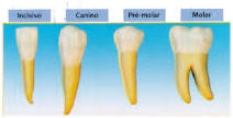 Os dentes da frente, incisivos servem para cortar os alimentos. Eles são chatos e cortantes. Os caninos rasgam os alimentos. Eles são muito pontiagudos. Os molares são grandes e largos, servem para triturar a comida.